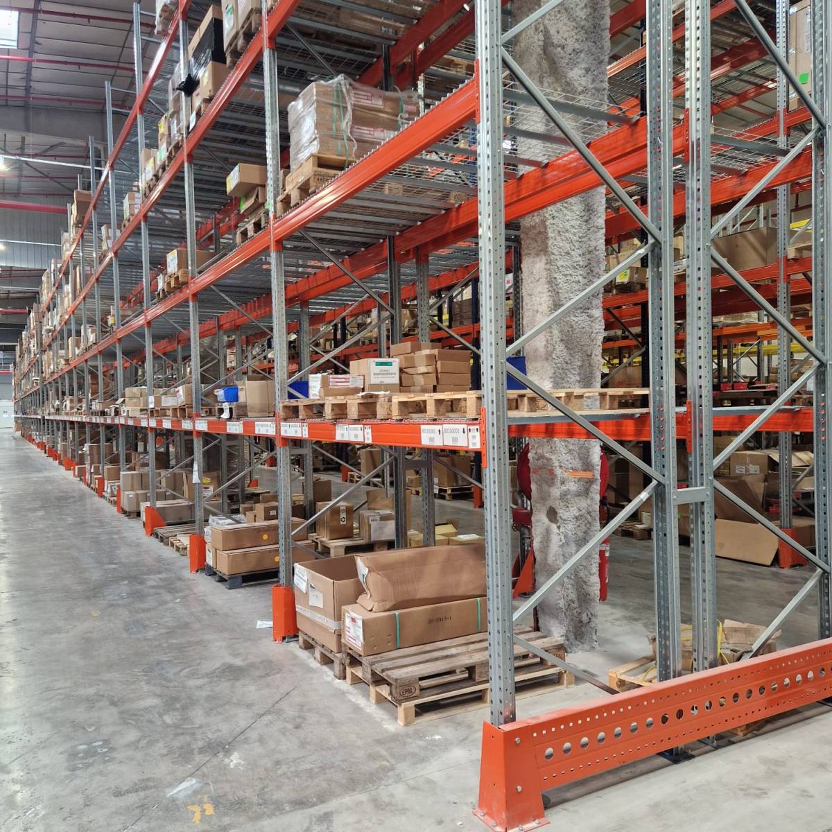 Pour ce projet, nous avons fourni et installé une large gamme de rayonnages, incluant des racks à palettes, mi-lourds et légers. Ces systèmes de stockage sont adaptés pour plusieurs types d'utilisations (stockage sur palettes ou picking) et pour plusieurs charges différentes, accessoiriser pour certains de caillebotis.