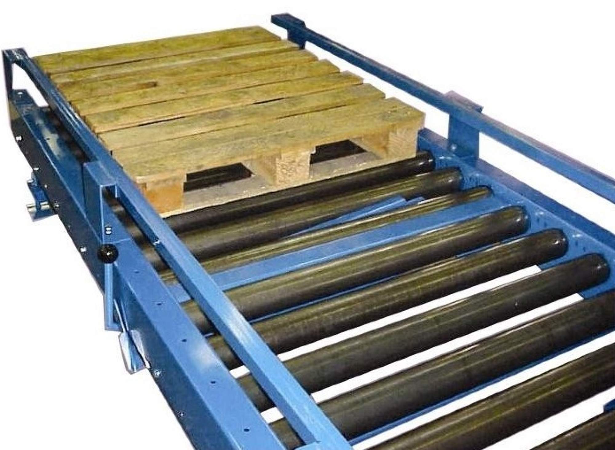 Le convoyeur palettes est un transporteur à rouleaux libres permettant le convoyage de palettes largeur 800 ou 1000 mm, conteneurs ou bacs d'acier jusqu'à 1500 kg/palette.