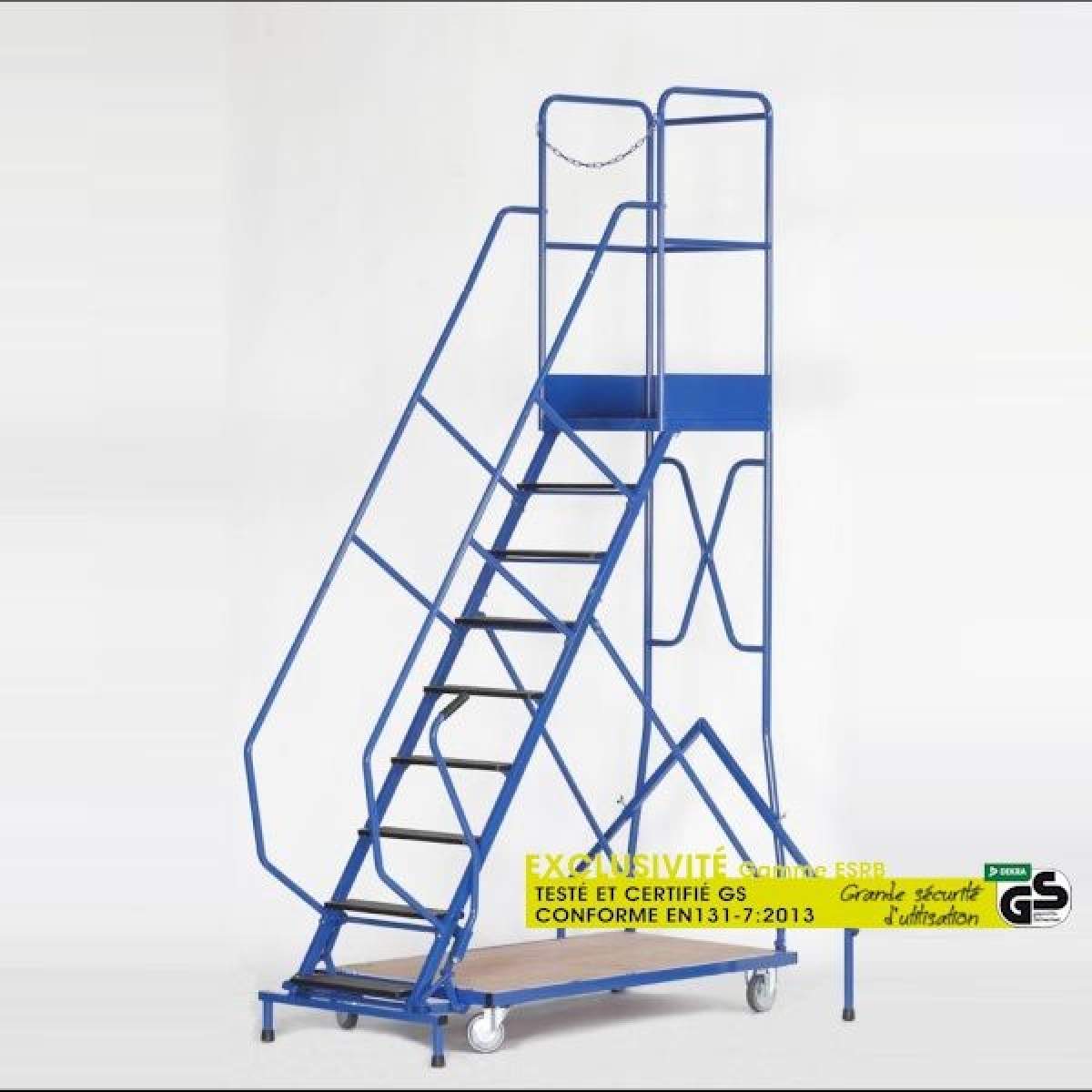 Une gamme complète de plateforme roulante (pirl) , escabeaux et marche pieds .